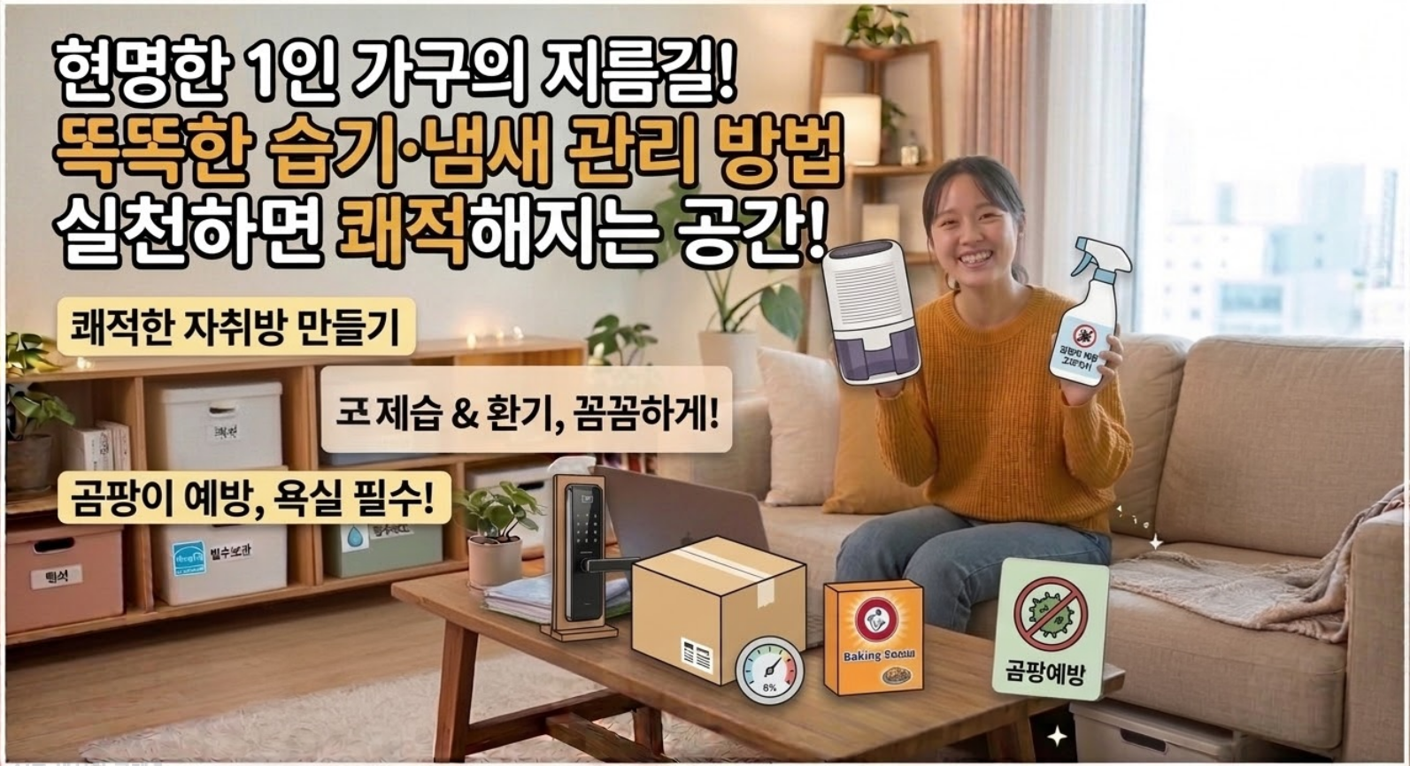 특히 1인 가구는 청소와 관리가 모두 자신의 몫이기 때문에, 습기와 냄새가 심해진 뒤에 한꺼번에 해결하려 하면 훨씬 힘들어집니다. 그래서 중요한 것은 문제가 커진 뒤 대청소를 하는 것이 아니라, 평소에 습기가 쌓이지 않게 관리하고 냄새 원인을 미리 줄이는 생활 습관을 만드는 것입니다. 비싼 제습기나 전문 장비가 있으면 분명 도움이 될 수 있지만, 그보다 먼저 필요한 것은 환기 타이밍, 물기 제거 습관, 욕실 관리, 침구와 빨래 관리 같은 기본 루틴입니다. 이런 것만 잘 지켜도 자취방의 공기와 청결감은 크게 달라집니다.