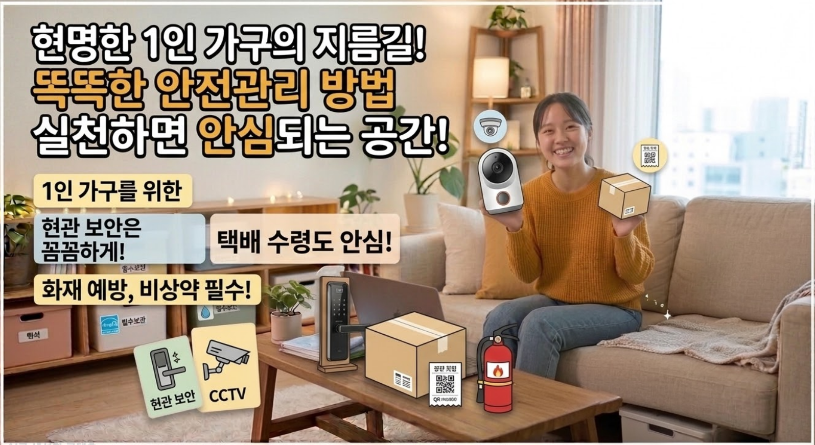 혼자 사는 생활에서 안전관리는 선택이 아니라 기본에 가깝습니다. 현관 보안은 집의 첫 번째 방어선이고, 택배와 개인정보 관리는 일상 속 노출을 줄이는 방법이며, 화재 예방과 비상약 준비는 예상치 못한 상황에 대비하는 가장 현실적인 습관입니다. 특별한 장비나 과한 걱정이 필요한 것이 아니라, 평소 생활 속에서 작은 확인과 준비를 꾸준히 해두는 것이 핵심입니다.